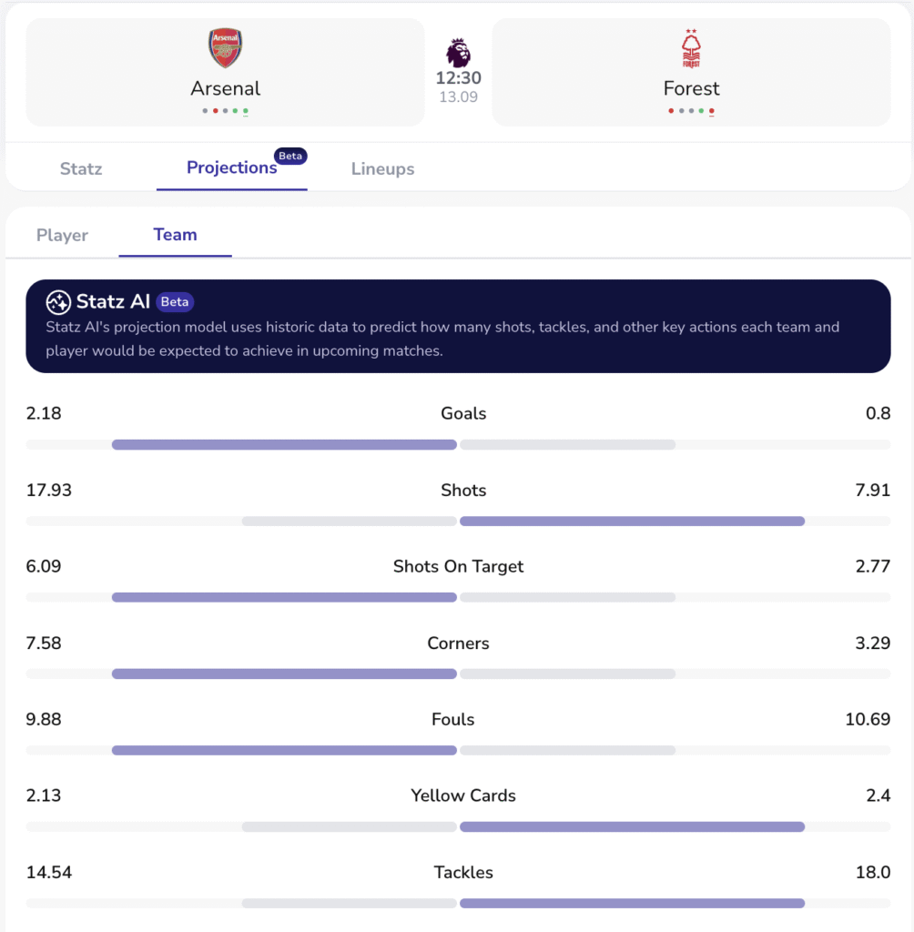 Looking at projections, Arsenal are expected to dominate the game, which should come as no surprise given their strong start to the season. There’s a couple of fouls angles we like, Morgan Gibbs White has fouled in all 10 of his last 10 PL Starts, Neco Williams is also a regular fouler and projects strongly, meanwhile Arsenal new boy Cristhian Mosquera will be battling with Chris Wood and be part of a high-back line that looks to stamp out counter-attacks before they begin.