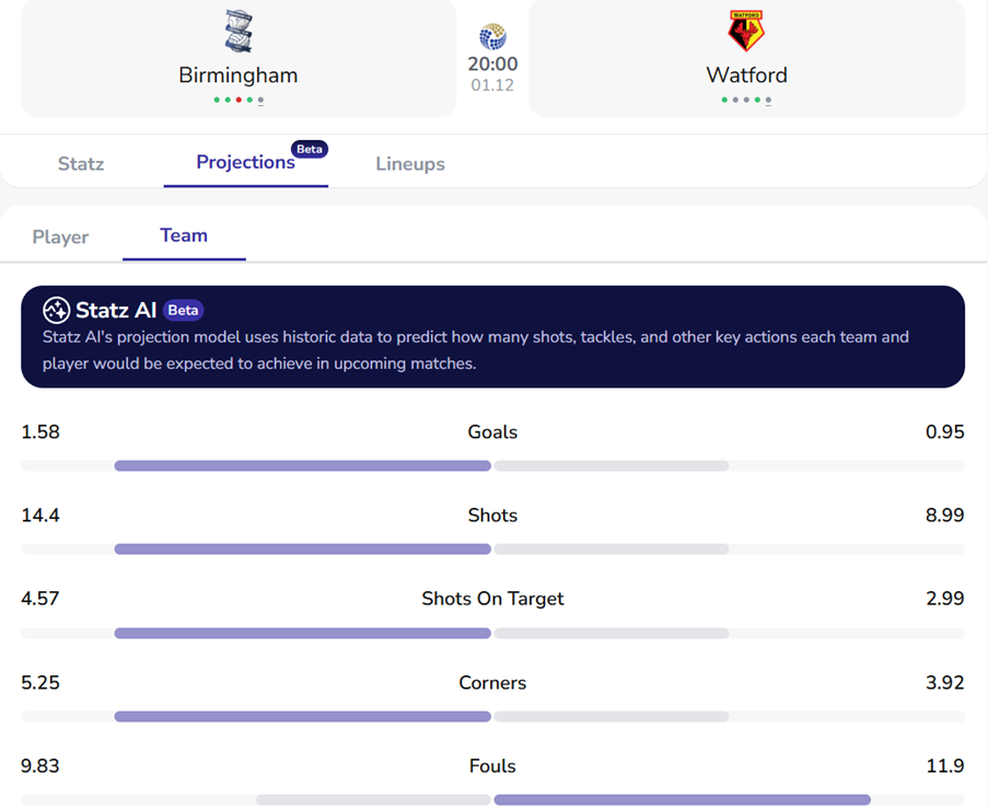 Our projections model puts Birmingham in the ascendancy here, with a 1.58-0.95 goal supremacy.