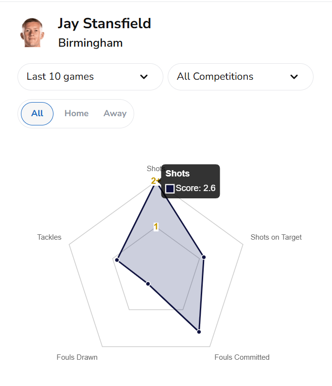 · Jay Stansfield – 2+ shots on target