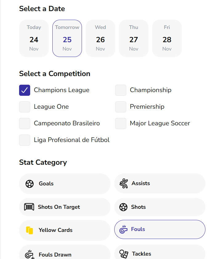 Champions League Fouls Bet Builder – Tuesday November 24
