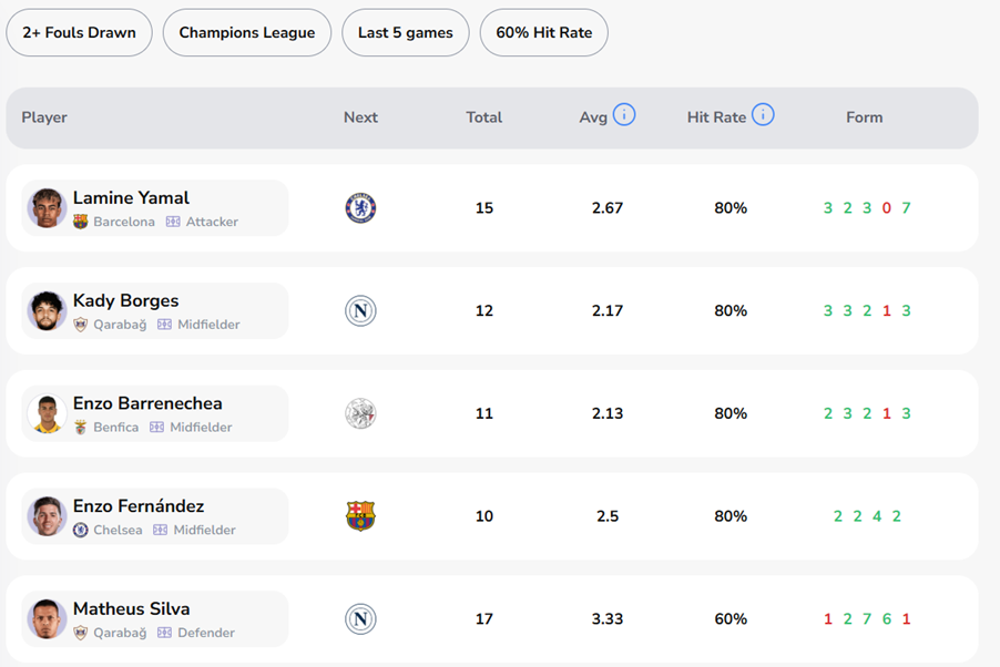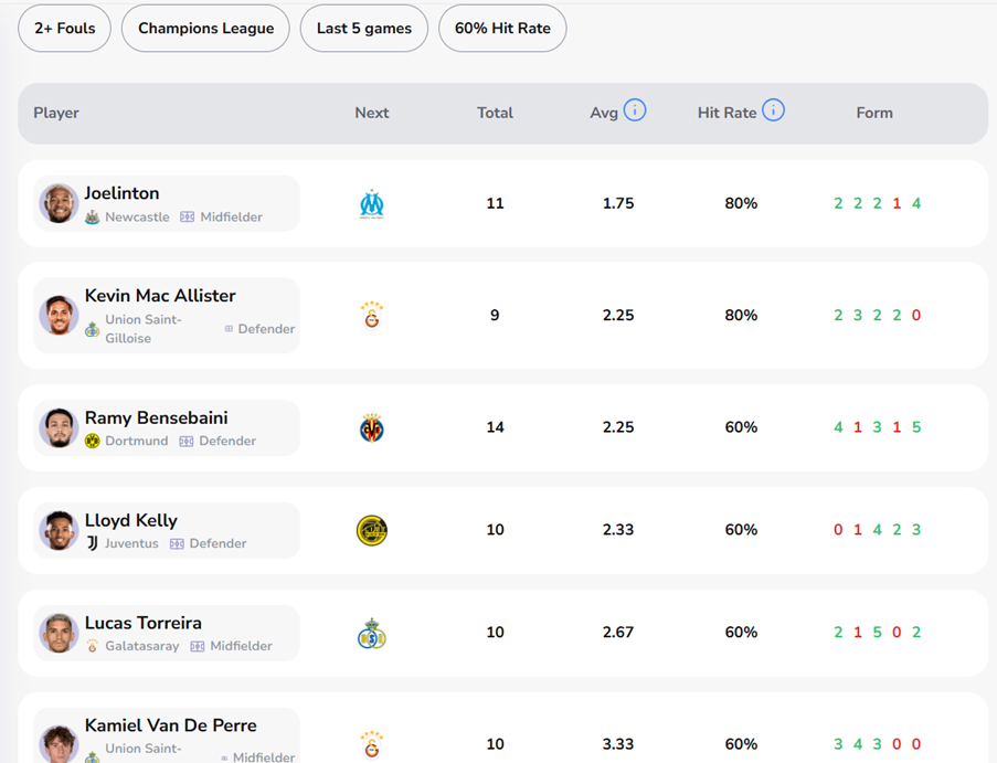 We’ve compiled a Champions League fouls bet builder for the round of fixtures on Tuesday November 24. Our inputs were: