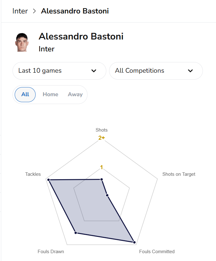 As we switch to the player projections model, another slice of possible value emerges. We’re projecting Alessandro Bastoni to commit 1.91 fouls. Can we round that up to two?