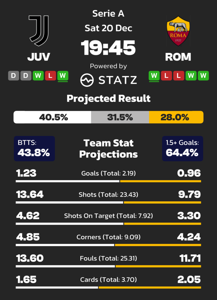Juventus have won three of their last four home games and kept three clean sheets, so that helps to explain our projections for this one:
