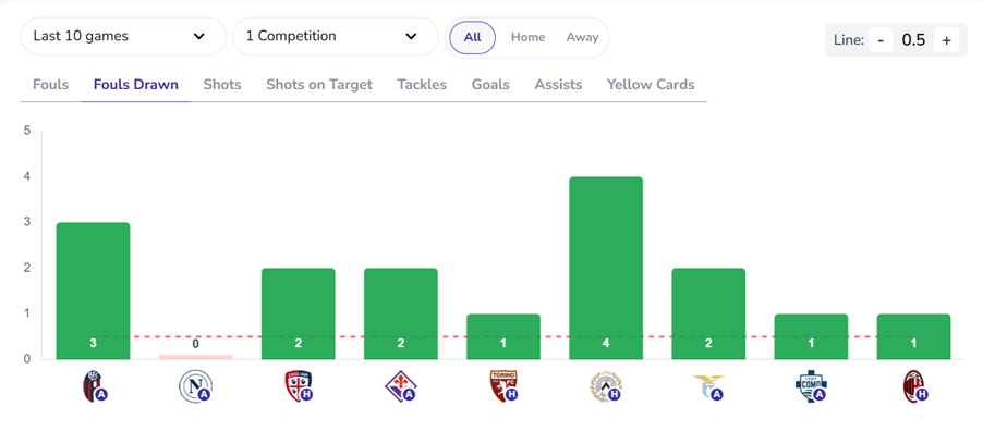 Kenan Yildiz is a man of interest for Juventus. He’s been fouled at least once in eight of his last nine Serie A games, with the German drawing two or more fouls in five of his last seven.