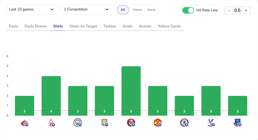 · Mo Salah 3+ Shots & 1+ Shot on Target – 10/11