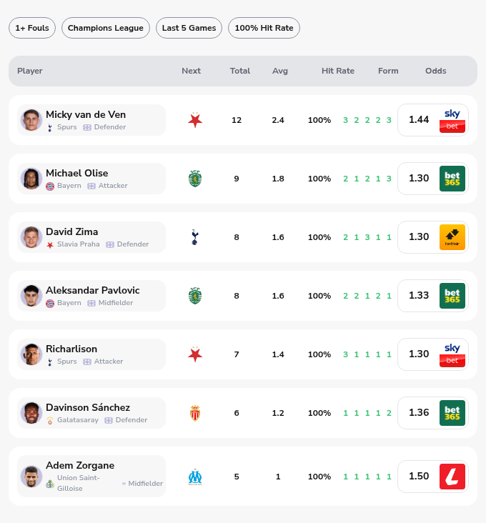 · Morgan Rogers 2+ shots (Aston Villa vs Manchester United)