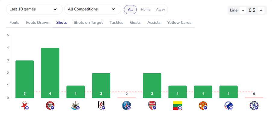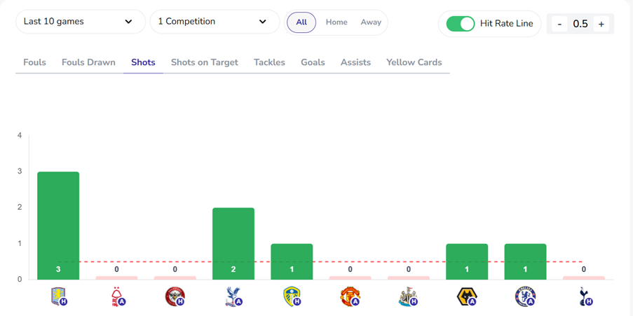 · Samuel Chukwueze 3+ shots (Fulham vs Crystal Palace)
