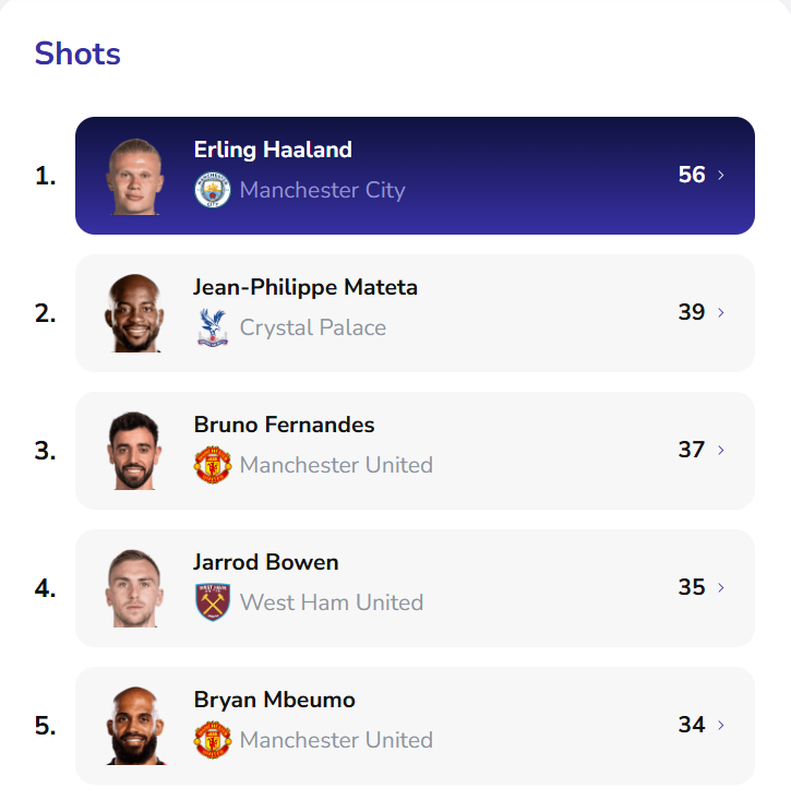 Statz Premier League Shots Bet Builder: Sunday 21st December