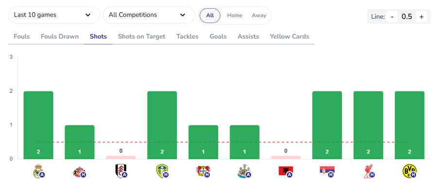 · Youri Tielemans 2+ shots (Aston Villa vs Manchester United)