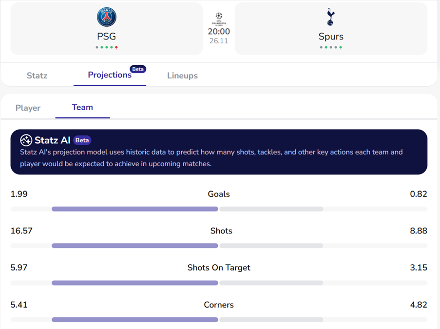 PSG vs Spurs: Statz Projections