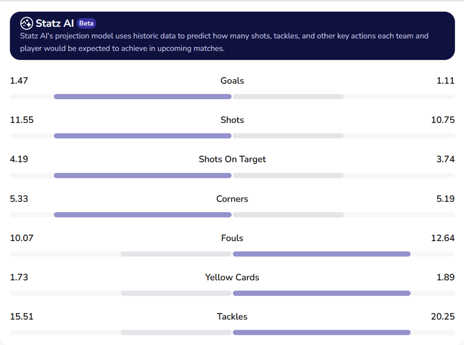Our Statz projections model hands Tottenham the edge here, but that’s only by a marginal amount when it comes to goal supremacy.