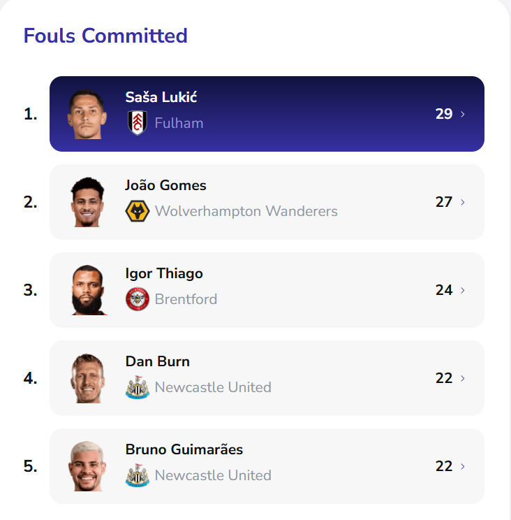 And in the blue corner we have Fulham’s Sasa Lukic, who has committed more fouls than anyone else in the EPL in 2025/26.
